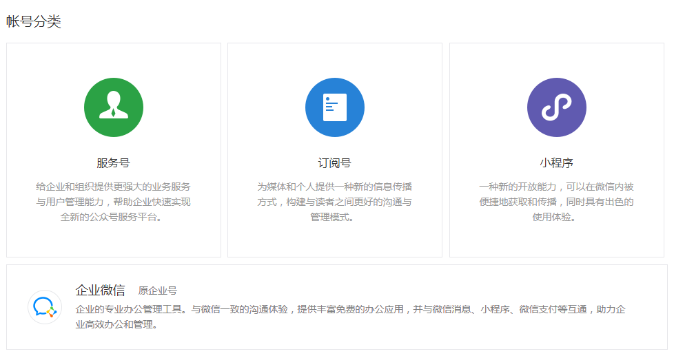 • 微信公众号(订阅号、服务号、小程序、企业微信)代注册服务